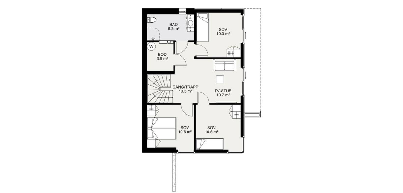 Signatur 301 er en moderne enebolig som tilbyr kvaliteter og rom som ofte finnes i større hus, med store vindusflater som slipper inn mye lys og gir en flott utsikt. Dette huset er spesielt designet for skrå tomter og passer perfekt for alle livsfaser. Med originale utbygg og vinkler gir den kreative vindusløsningen og fasaden huset et spennende og moderne uttrykk.