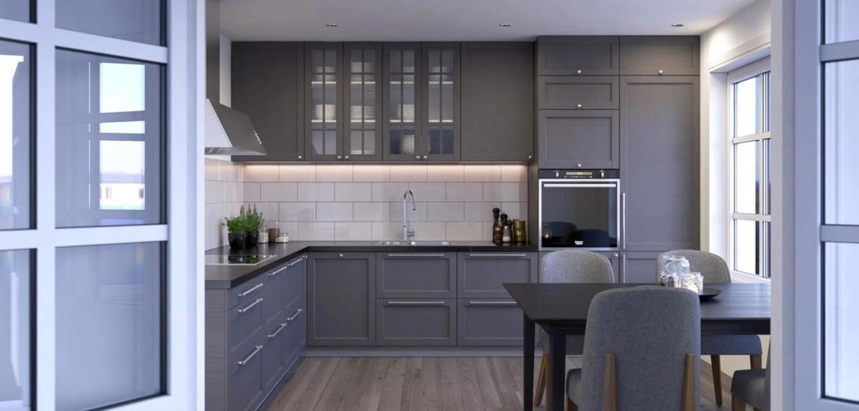 I dag er det blitt svært vanlig med åpne kjøkken- og stue-løsninger, men det er ikke alltid det er like praktisk. Her er det skyvedør mellom stua og kjøkkenet, slik at man kan ha det åpent mellom rommene, men man kan også stenge av ved behov. Hvis man har behov for flere stille steder til hjemmekontor, kan for eksempel kjøkkenbordet benyttes. Eller motsatt, hvis et av barna gjør lekser i stua, og de andre lager pizzadeig med kjøkkenmaskin på kjøkkenet, så kan man stenge ute bråket. Man kan også lukke bort alt rot på kjøkkenet, og sette seg i stua med gjester. Fra gangen er det er også en egen dør inn til kjøkkenet, slik at det er kort vei å bære matvarene.